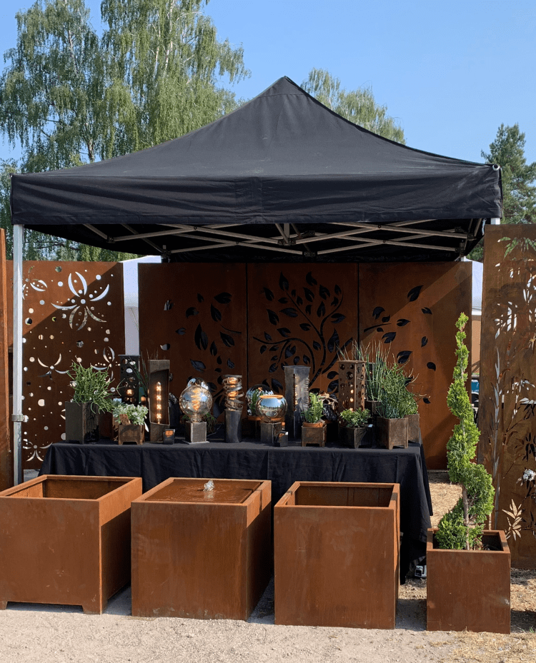 Toutefois, pour éviter les coulures sur certaines surfaces sensibles (comme le béton clair ou les dallages en pierre), il est conseillé de laisser l’acier Corten se stabiliser avant de le placer définitivement. Une simple installation dans un endroit aéré permet d’accélérer le processus de maturation de la patine.
