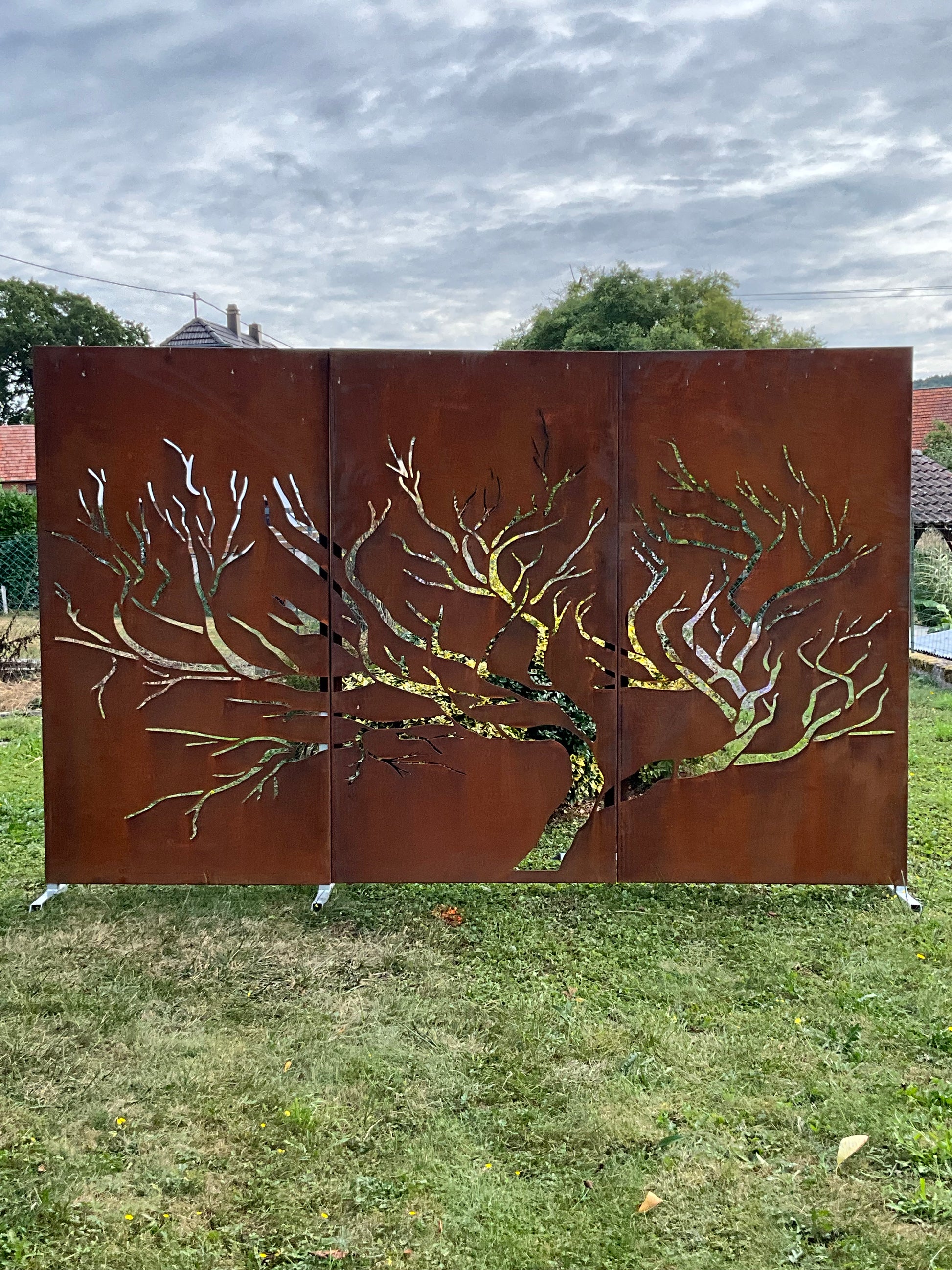 Panneaux brise vue en tôle acier corten épaisseur 2 mm avec double pliage sur les 4 côtés qui assure la stabilité et donne une belle finition au panneau.