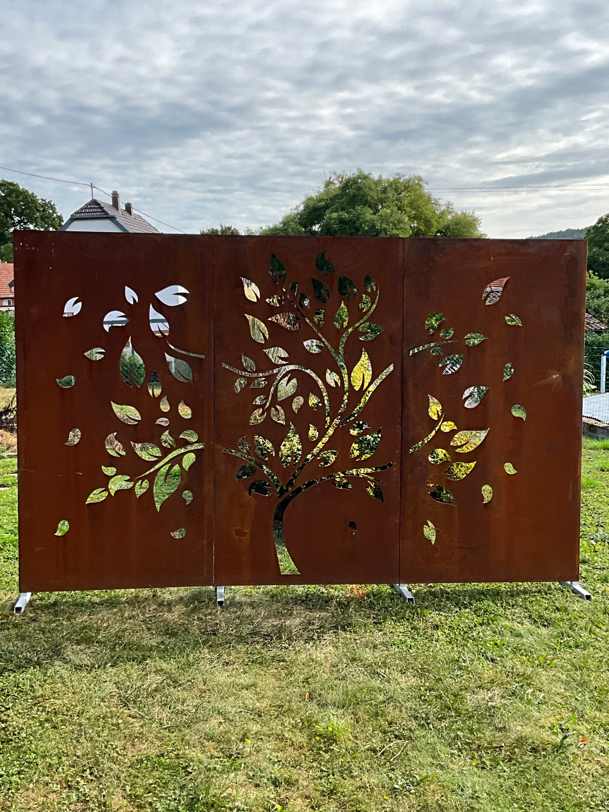 Panneaux brise vue en tôle acier corten épaisseur 2 mm avec double pliage sur les 4 côtés qui assure la stabilité et donne une belle finition au panneau.