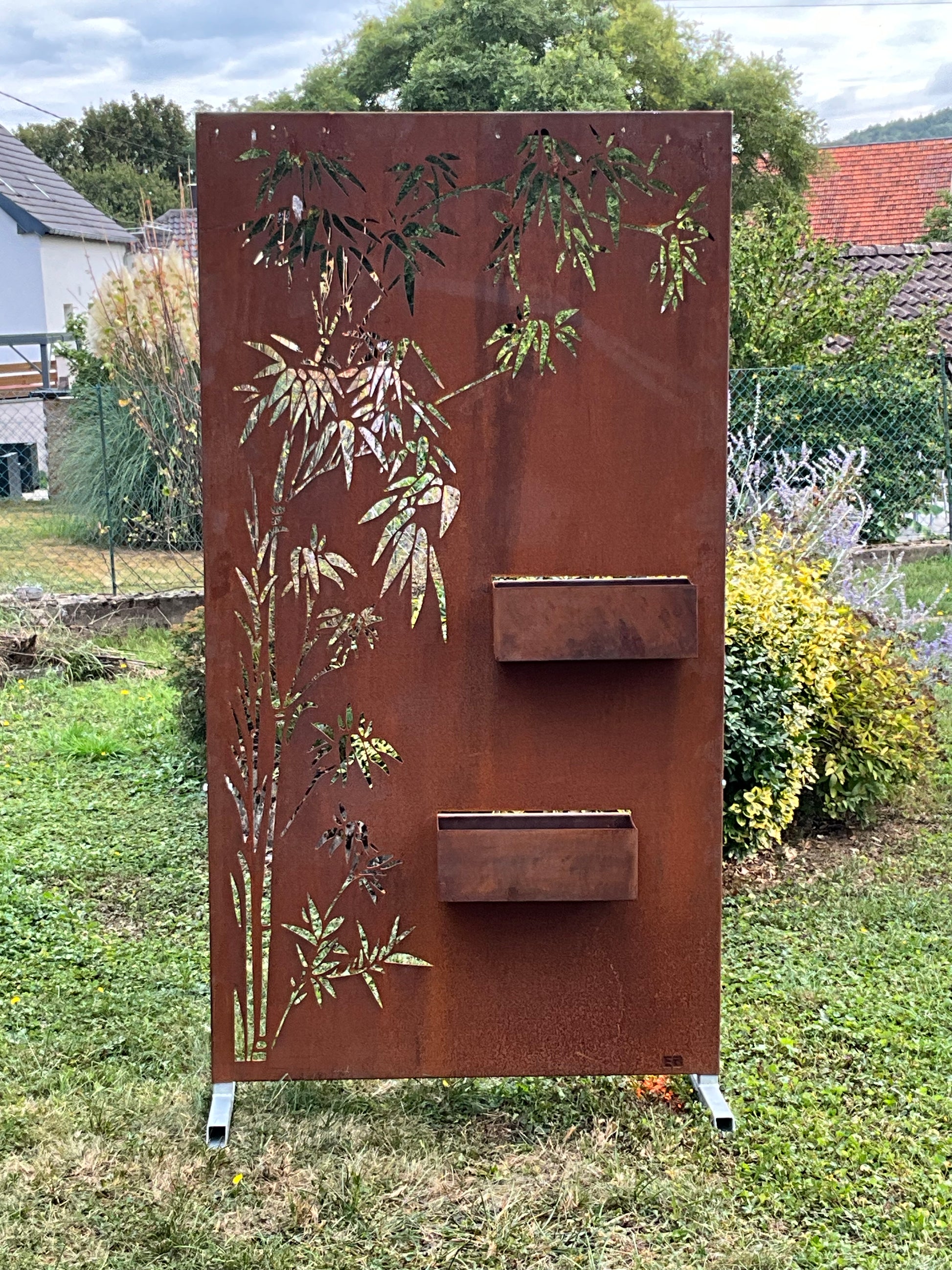 Panneaux brise vue en tôle acier corten épaisseur 2 mm avec double pliage sur les 4 côtés qui assure la stabilité et donne une belle finition au panneau.